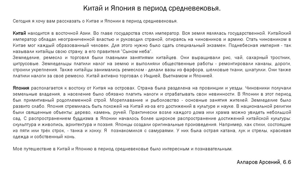 Моё путешествие в Китай и Японию в период средневековье было интересным и познавательным.