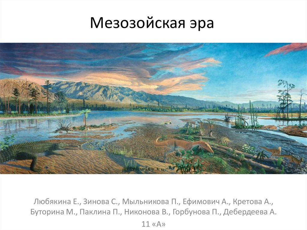 Продолжительность мезозойской эры ≈ 186 млн. лет.Состав атмосферы: кислород, углекислый газ, метан