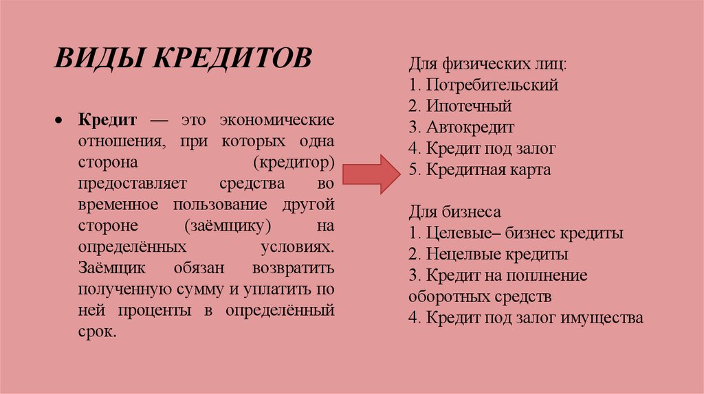 УСЛОВИЯ КРЕДИТОВАНИЯ