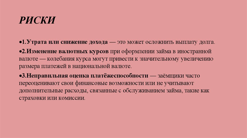 1.Утрата или снижение дохода — это может осложнить выплату долга.