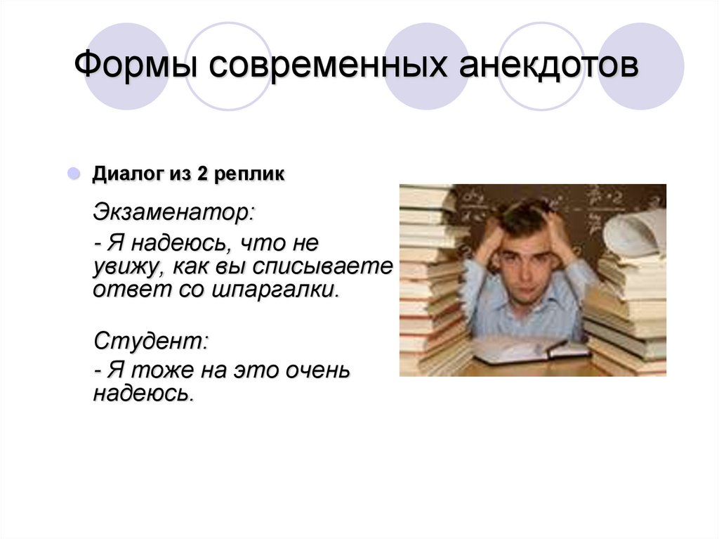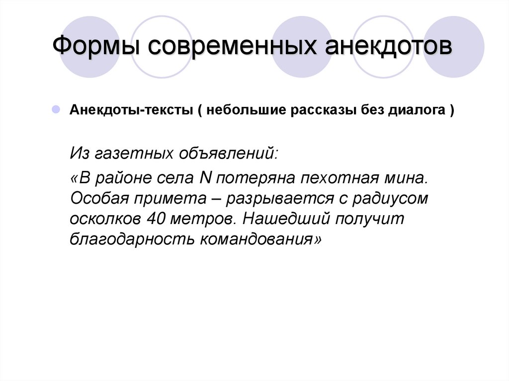 Формы современных анекдотовАнекдоты-тексты ( небольшие рассказы без диалога )