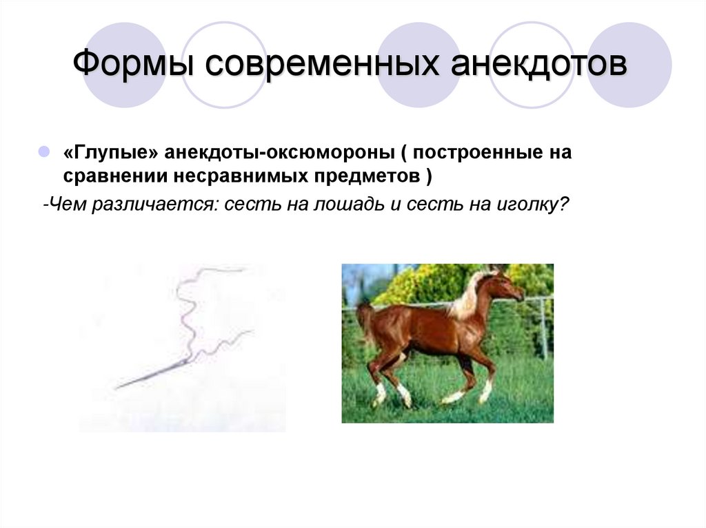 Формы современных анекдотов«Глупые» анекдоты-оксюмороны ( построенные на