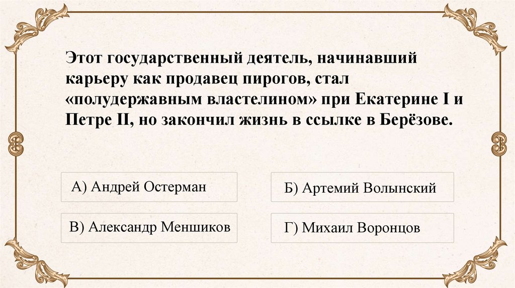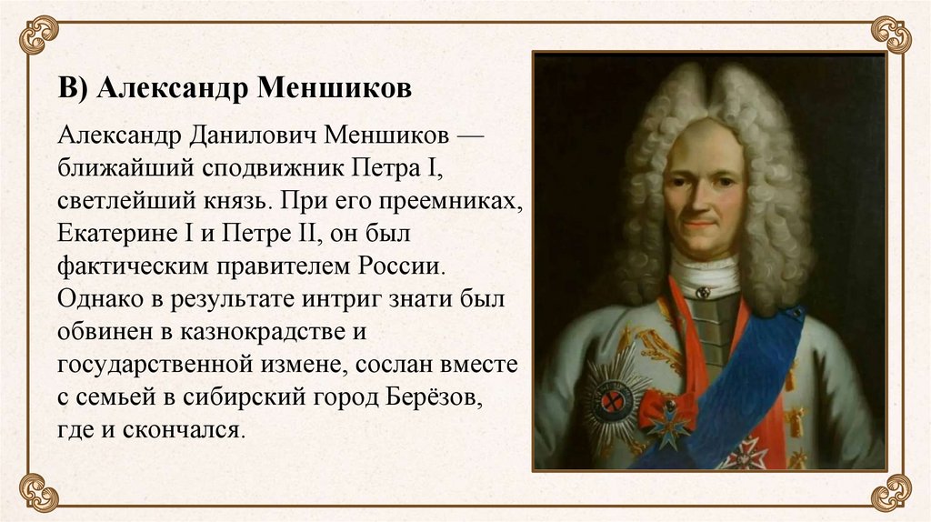 В) Александр МеншиковАлександр Данилович Меншиков —