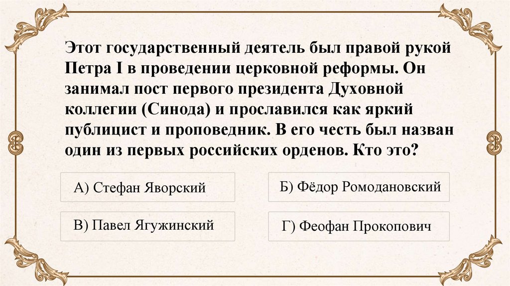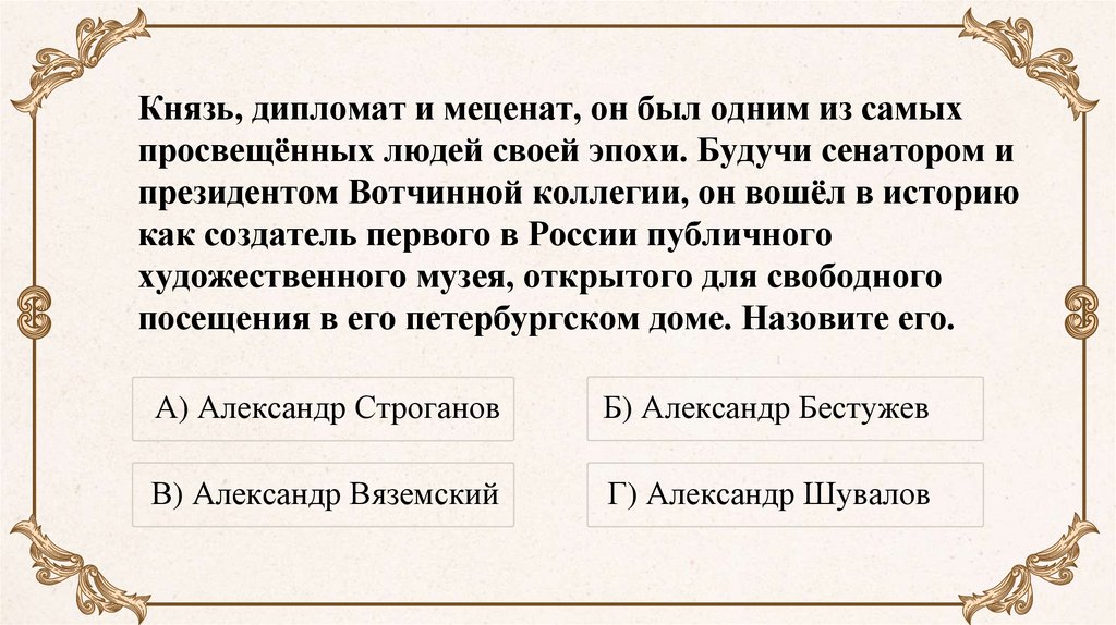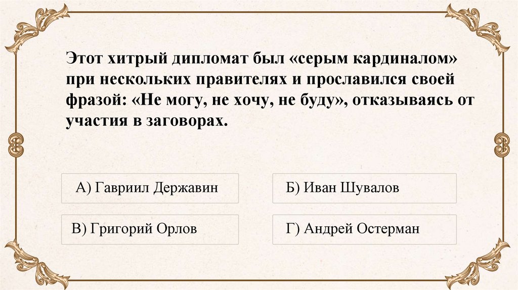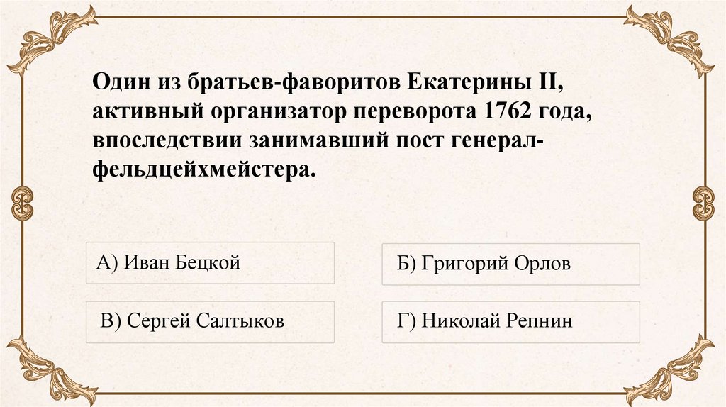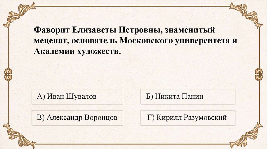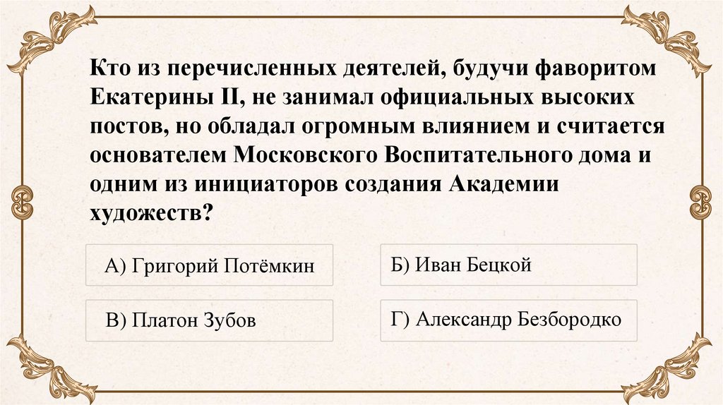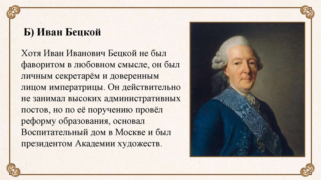 Б) Иван БецкойХотя Иван Иванович Бецкой не был