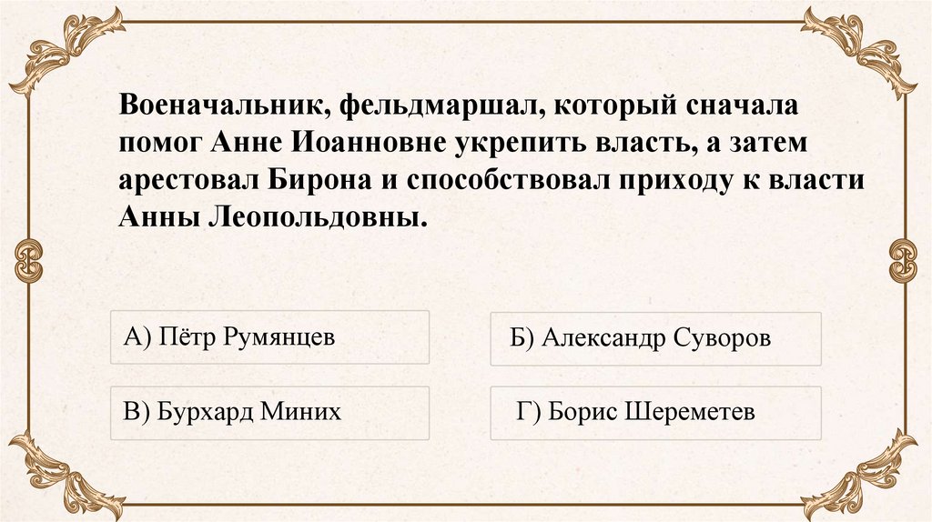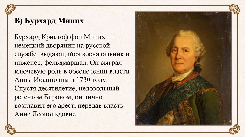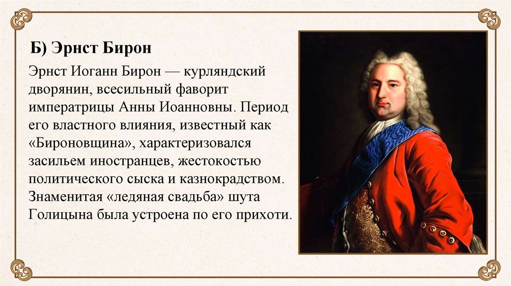 Б) Эрнст БиронЭрнст Иоганн Бирон — курляндский
