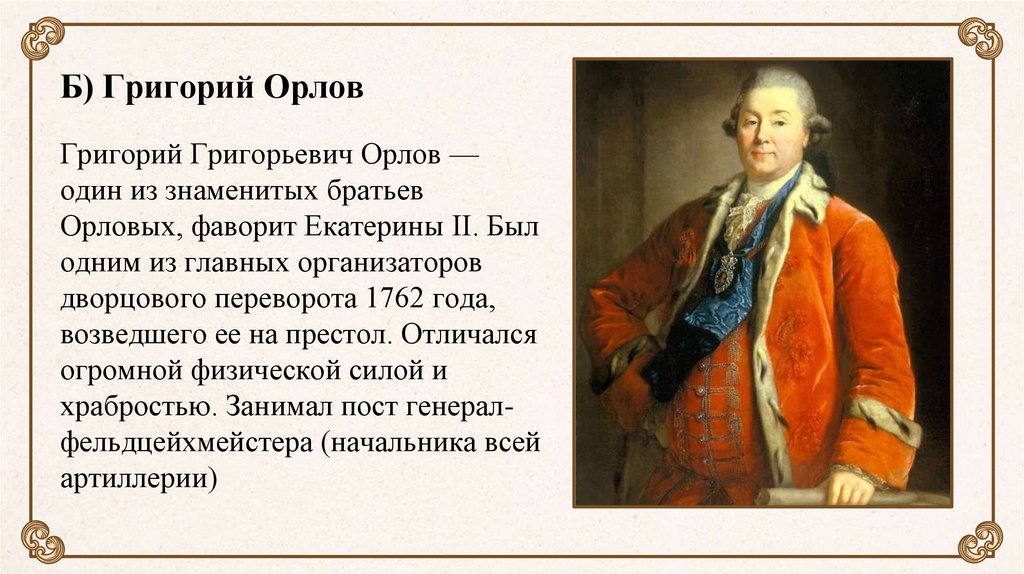 Кто из перечисленных деятелей, будучи фаворитомЕкатерины II, не занимал официальных высоких