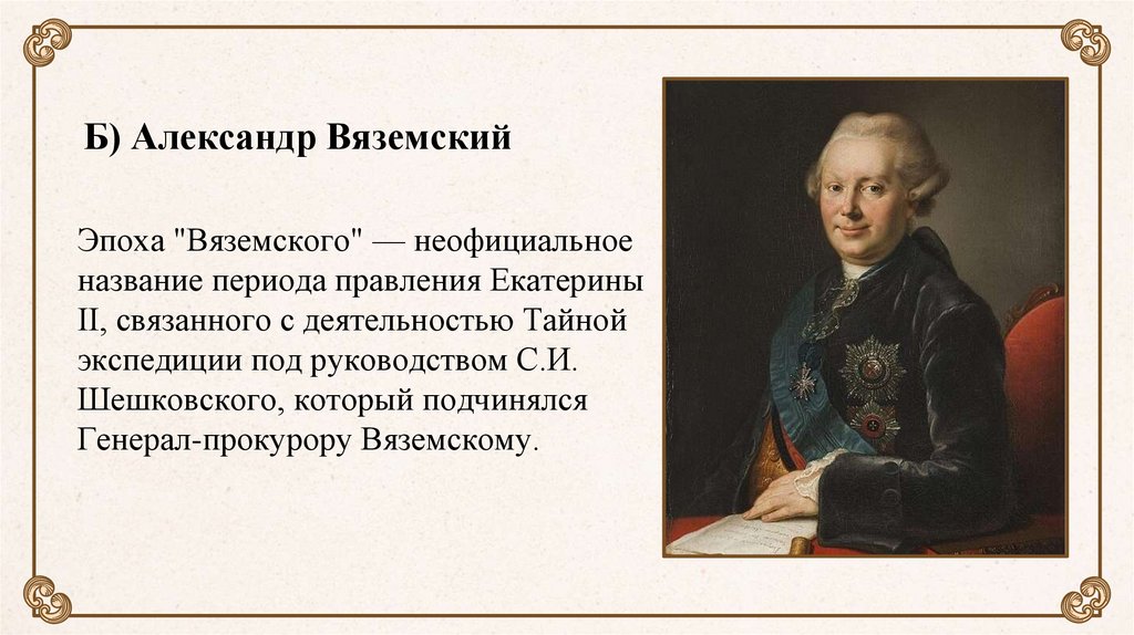 Б) Александр ВяземскийЭпоха "Вяземского" — неофициальное