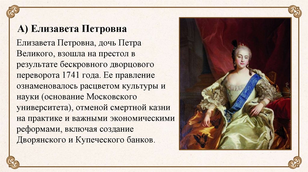 А) Елизавета ПетровнаЕлизавета Петровна, дочь Петра