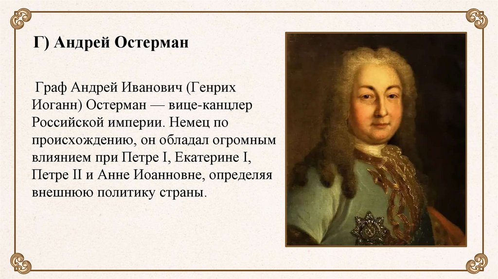 Г) Андрей ОстерманГраф Андрей Иванович (Генрих