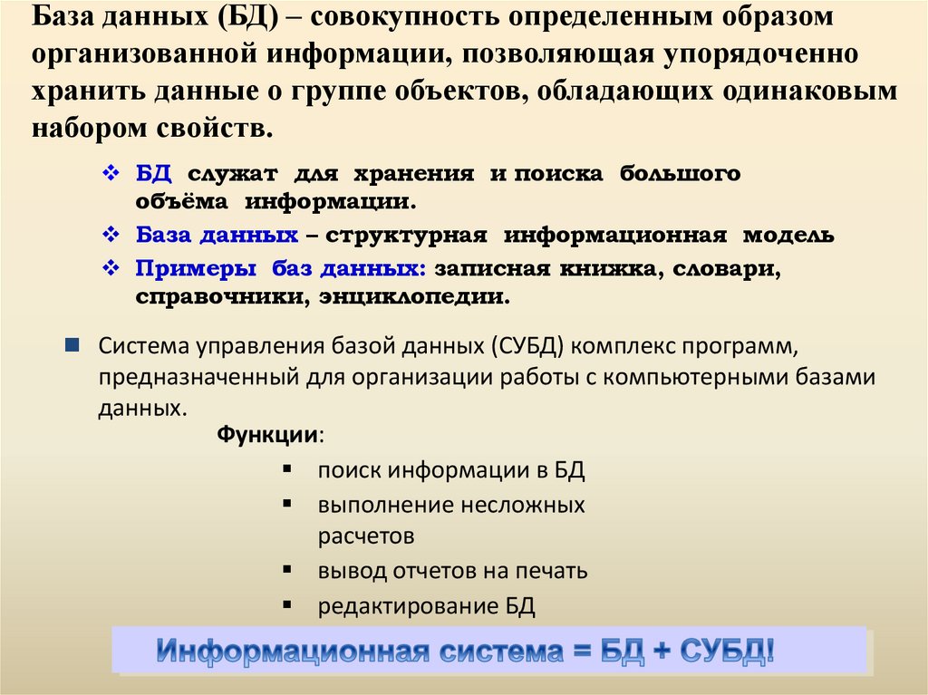База данных (БД) – совокупность определенным образоморганизованной информации, позволяющая упорядоченно