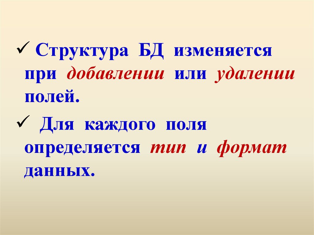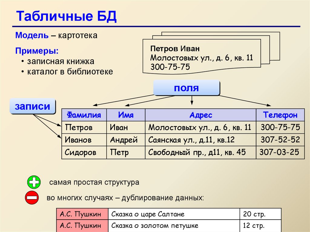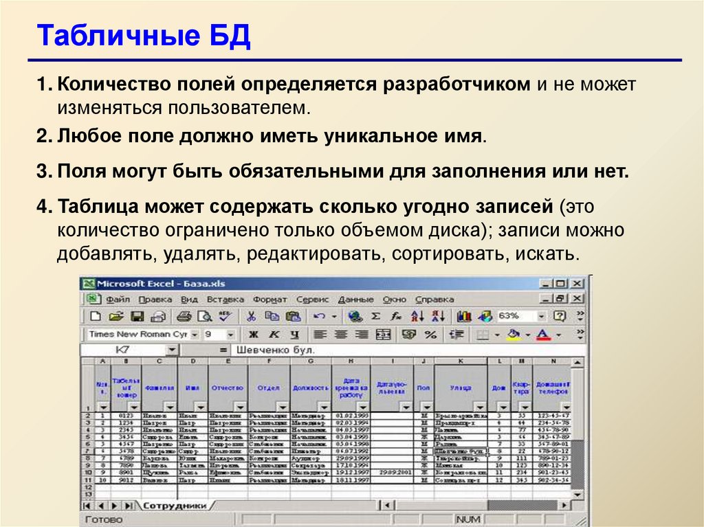 Табличные БД1. Количество полей определяется разработчиком и не может
