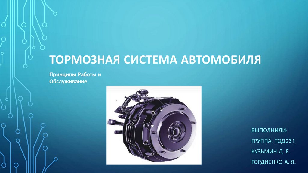 ТОРМОЗНАЯ СИСТЕМА АВТОМОБИЛЯПринципы Работы и