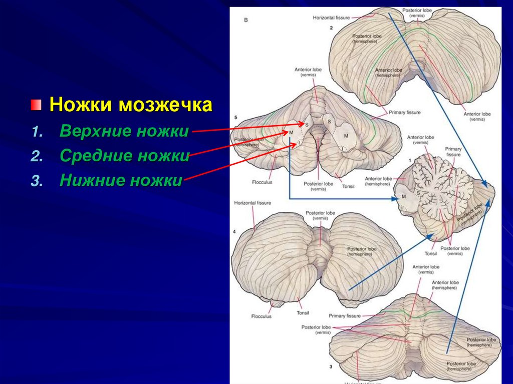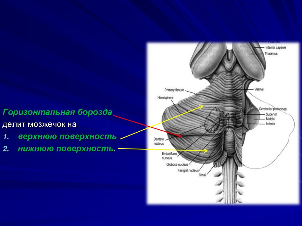 Глубокая первичная борозда делит мозжечок на1. переднюю долю