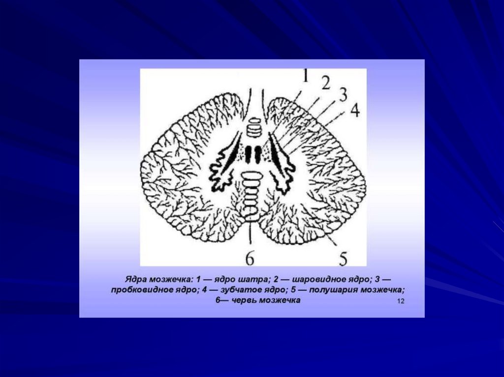 1. Парные ядра мозжечка (зубчатое, пробковидное, шаровидное).