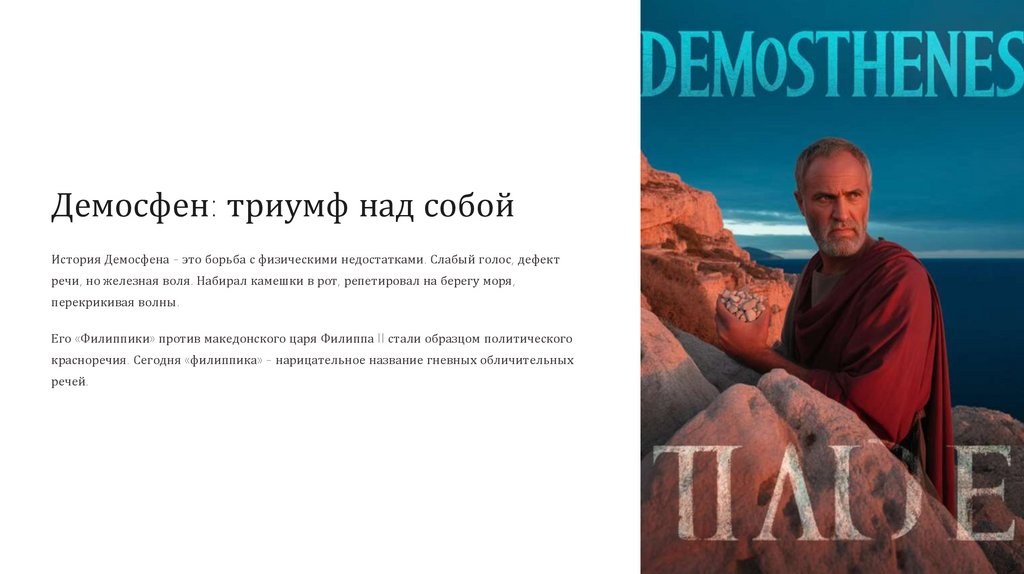 Демосфен: триумф над собойИстория Демосфена - это борьба с физическими недостатками. Слабый голос, дефект