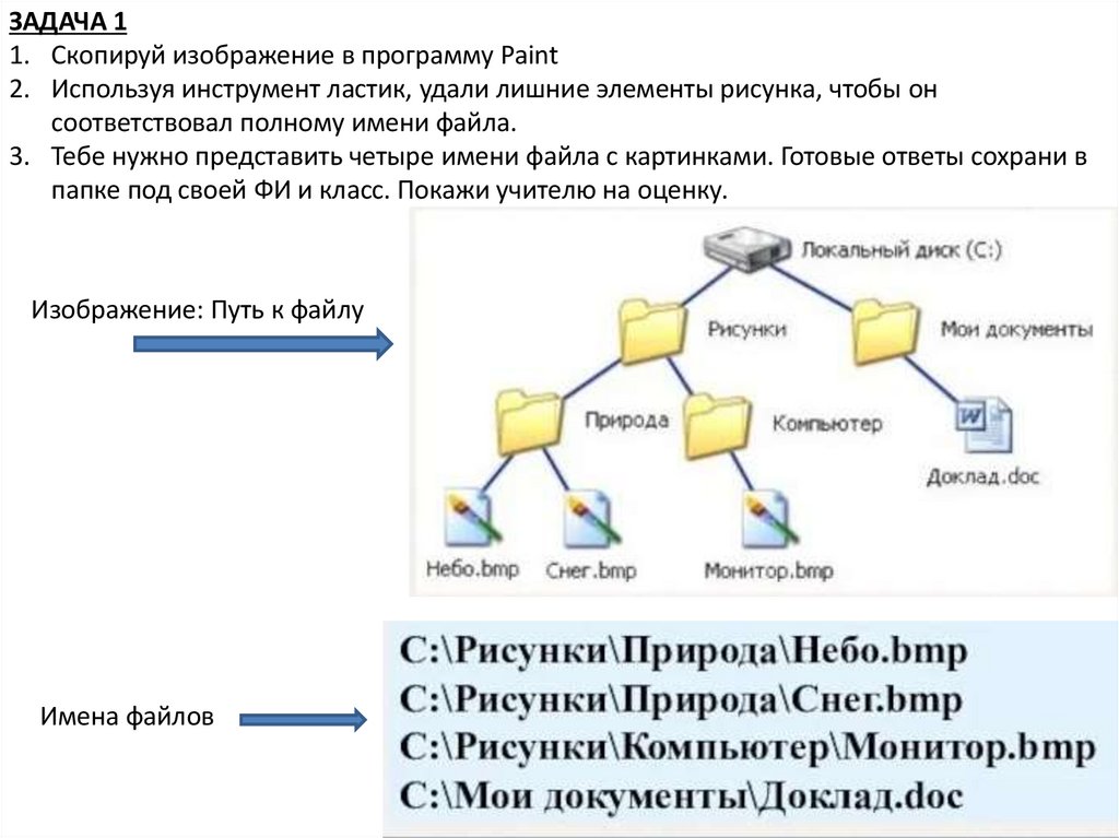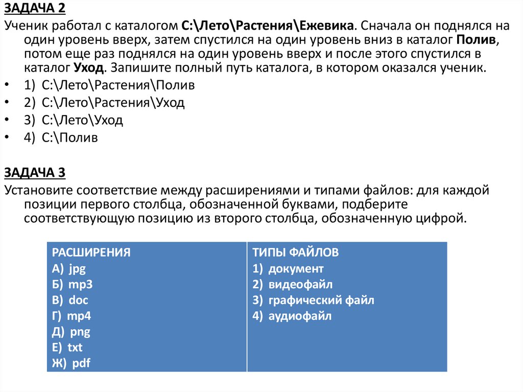 ЗАДАЧА 2Ученик работал с каталогом С:\Лето\Растения\Ежевика. Сначала он поднялся на