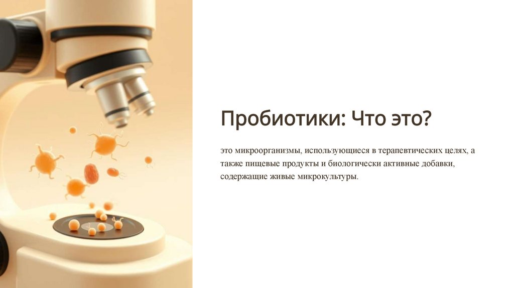 Пробиотики: Что это?это микроорганизмы, использующиеся в терапевтических целях, а