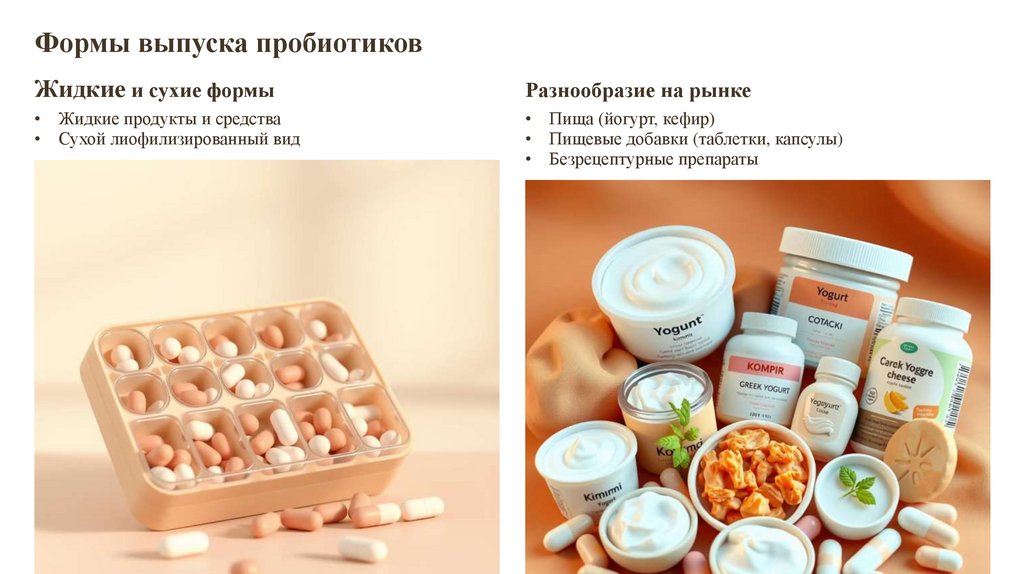 Формы выпуска пробиотиковЖидкие и сухие формы