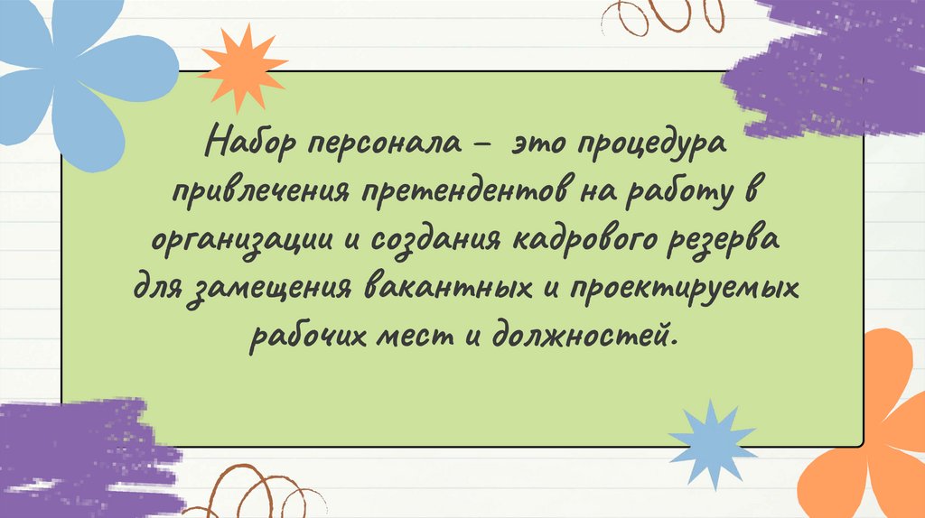 Набор персонала – это процедурапривлечения претендентов на работу в