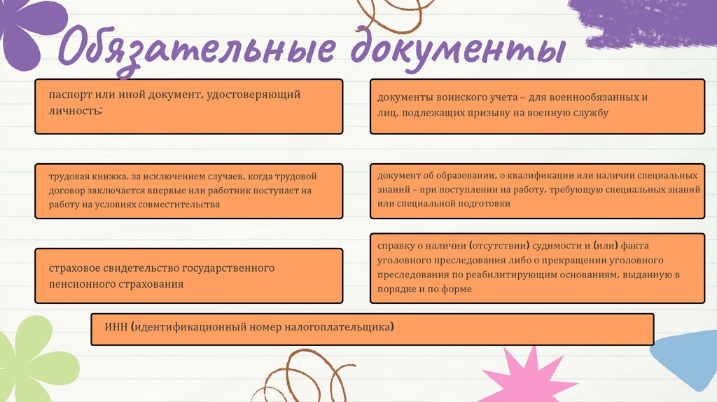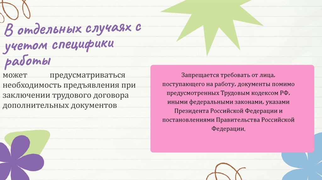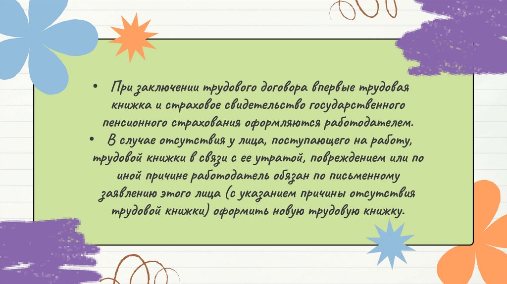 • При заключении трудового договора впервые трудоваякнижка и страховое свидетельство государственного