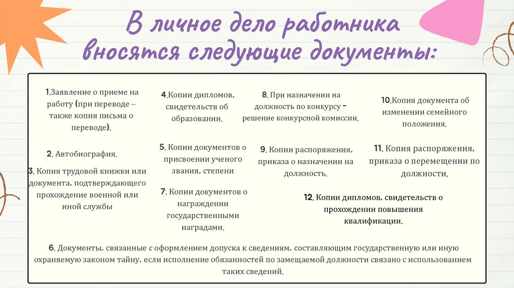 6. Документы, связанные с оформлением допуска к сведениям, составляющим государственную или иную