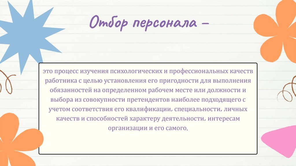 Отбор персонала –это процесс изучения психологических и профессиональных качеств