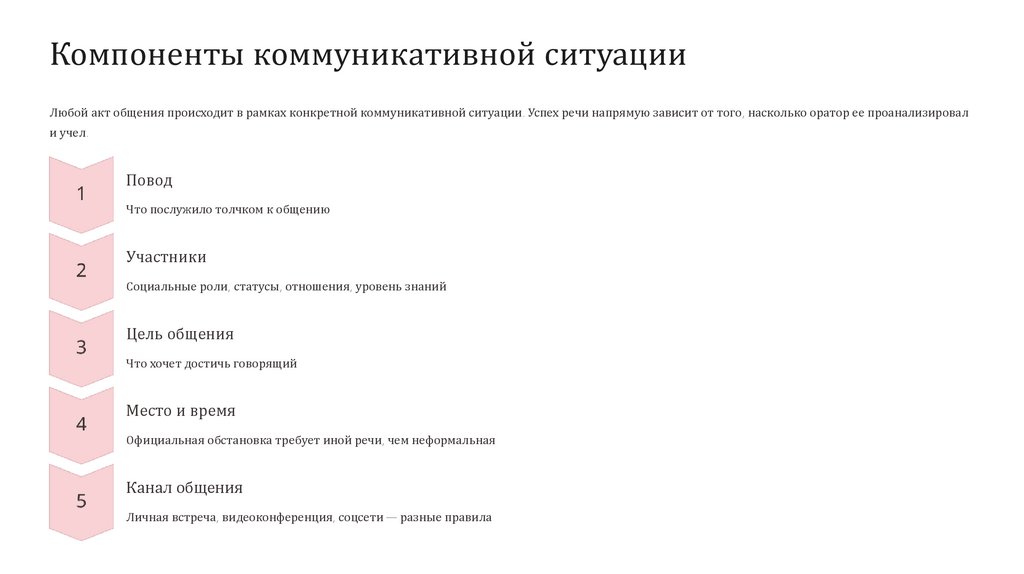 Компоненты коммуникативной ситуацииЛюбой акт общения происходит в рамках конкретной коммуникативной ситуации. Успех речи напрямую зависит от того, насколько оратор ее проанализировал