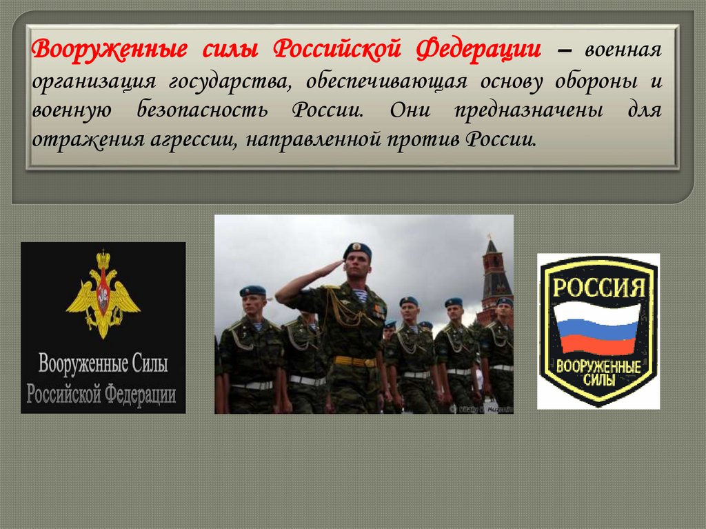 Вооруженные силы Российской Федерации – военнаяорганизация государства, обеспечивающая основу обороны и