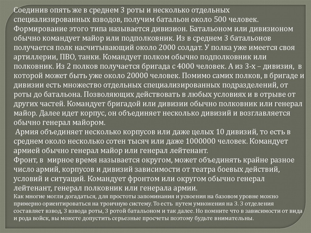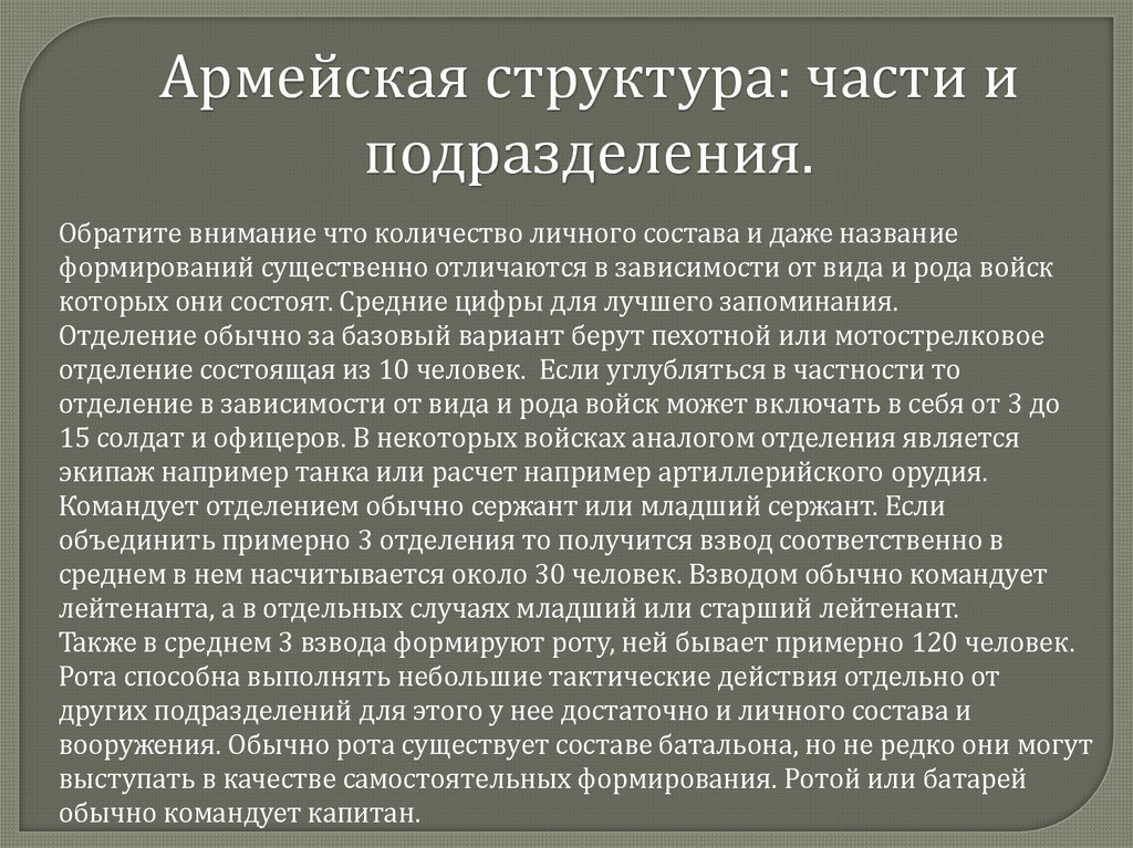 части. Отделение, взвод, рота, батальон — все они объединяются одним