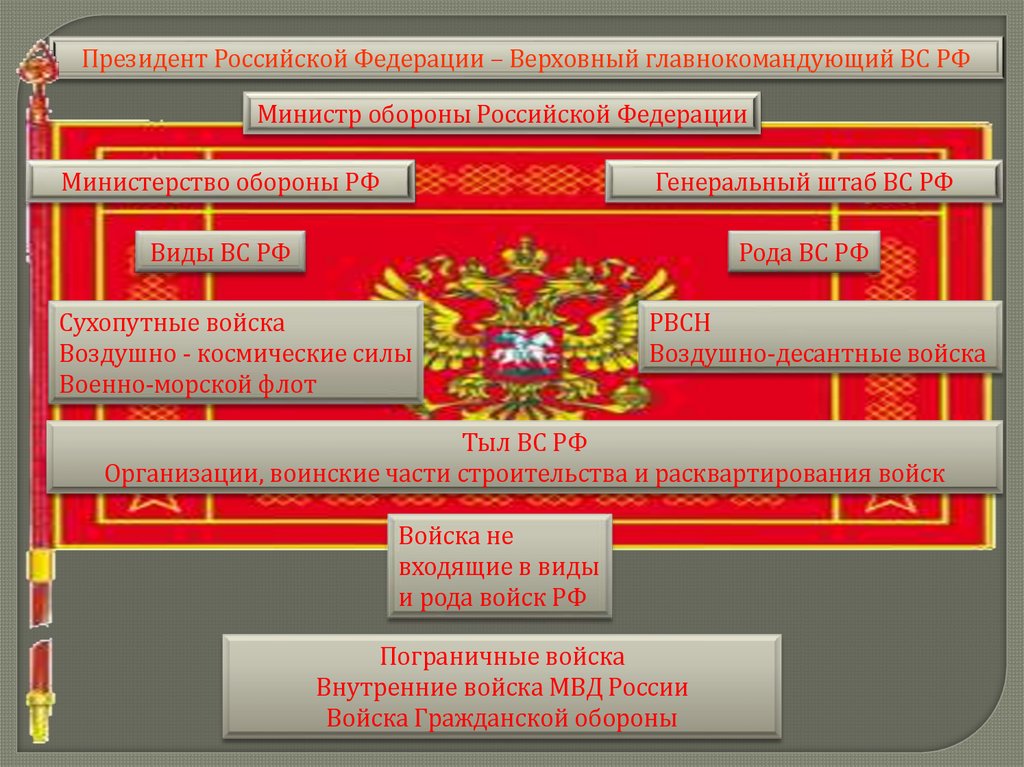 Президент Российской Федерации – Верховный главнокомандующий ВС РФМинистр обороны Российской Федерации