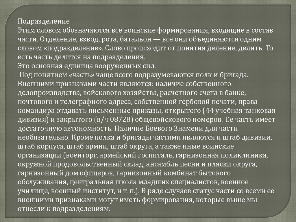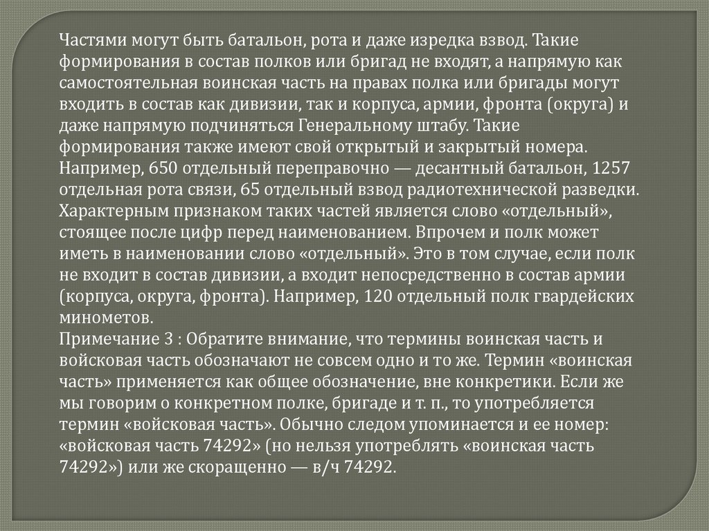 Примечание 3 : Обратите внимание, что термины воинская часть и