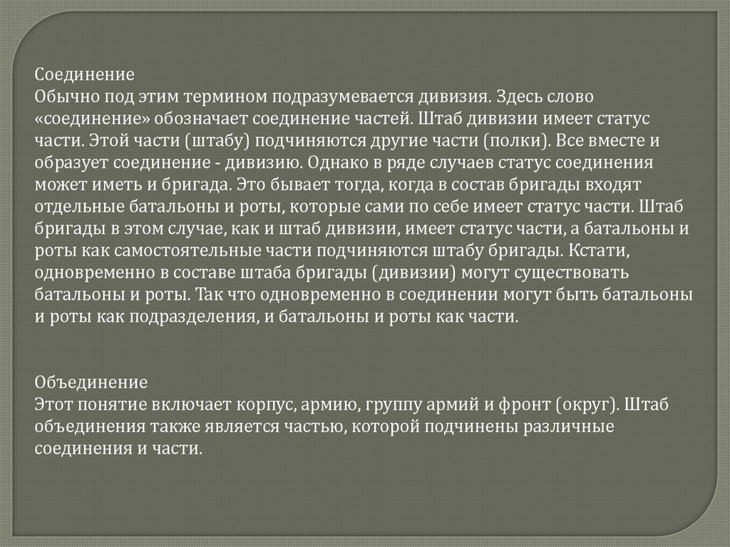 «соединение» обозначает соединение частей. Штаб дивизии имеет статус