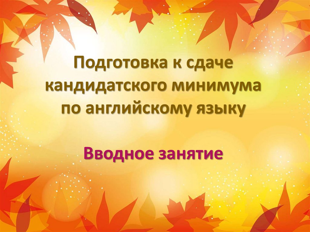 1. Подготовка к сдаче кандидатского минимума по английскому языку Вводное занятие