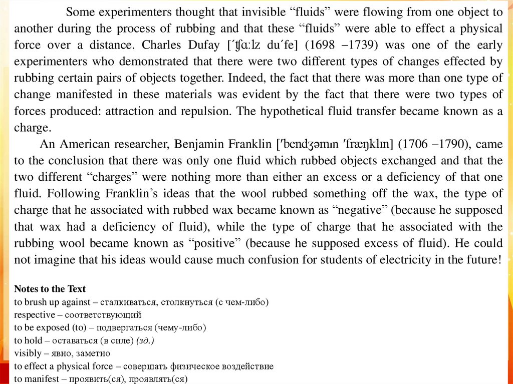 An American researcher, Benjamin Franklin [ʹbendʒǝmIn ʹfræŋklɪn] (1706 –1790), came