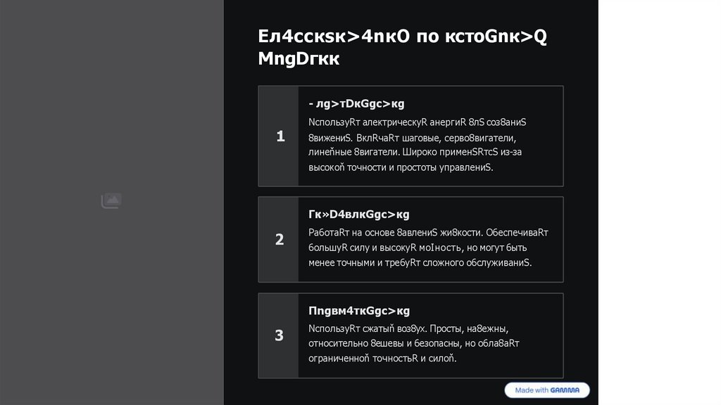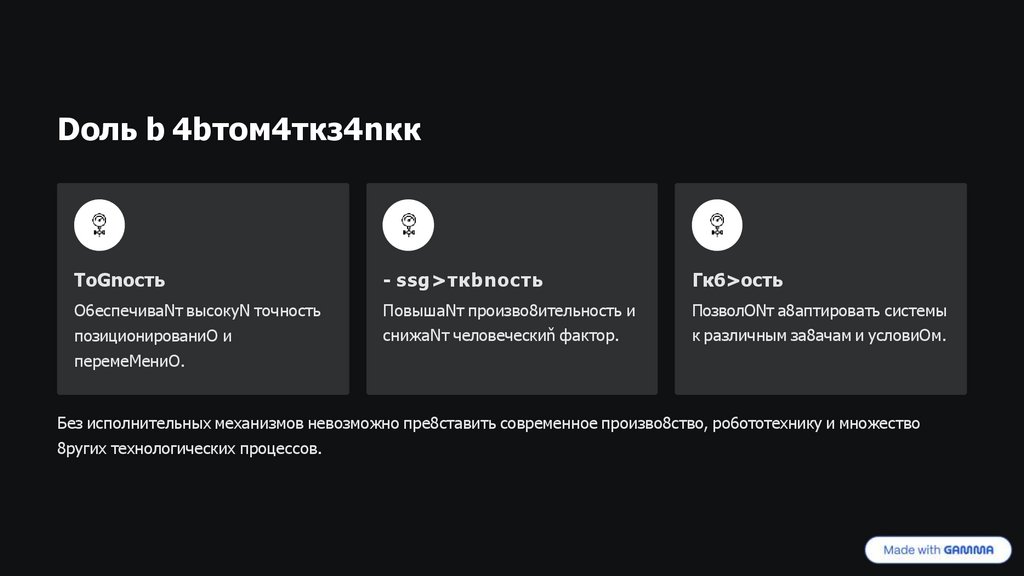 Без исполнительных механизмов невозможно пре8ставить современное произво8ство, ро6ототехнику и множество
