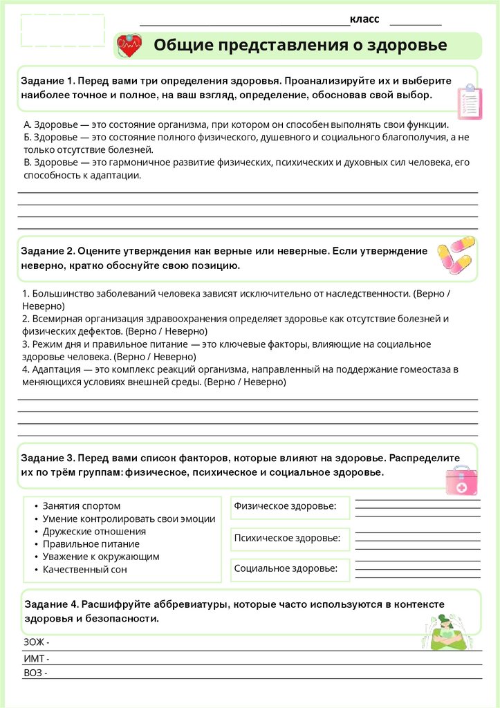 Задание 1. Перед вами три определения здоровья. Проанализируйте их и выберите
