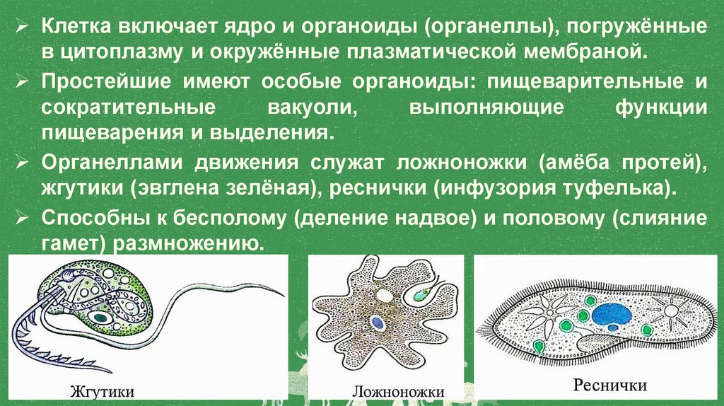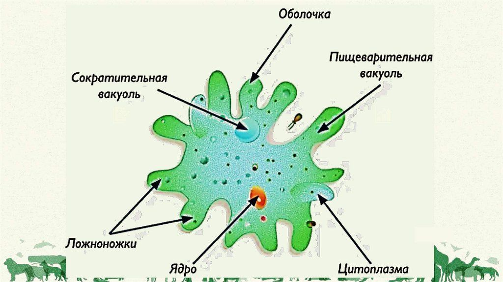 Клетка содержит одно ядро, одну сократительную вакуоль и
