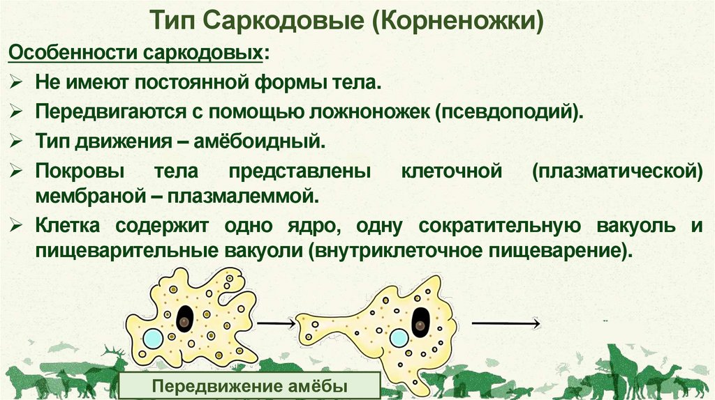 Тип Саркодовые (Корненожки)Особенности саркодовых: