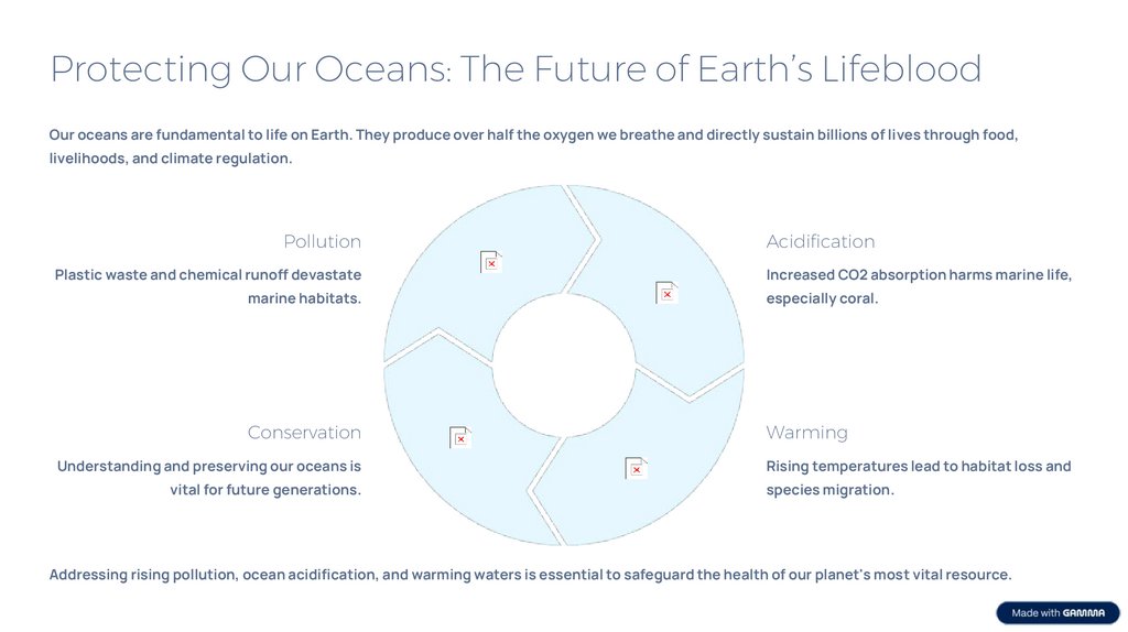 Addressing rising pollution, ocean acidification, and warming waters is essential to safeguard the health of our planet's most vital resource.