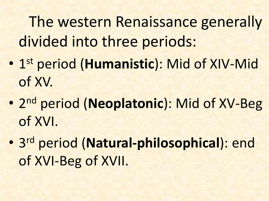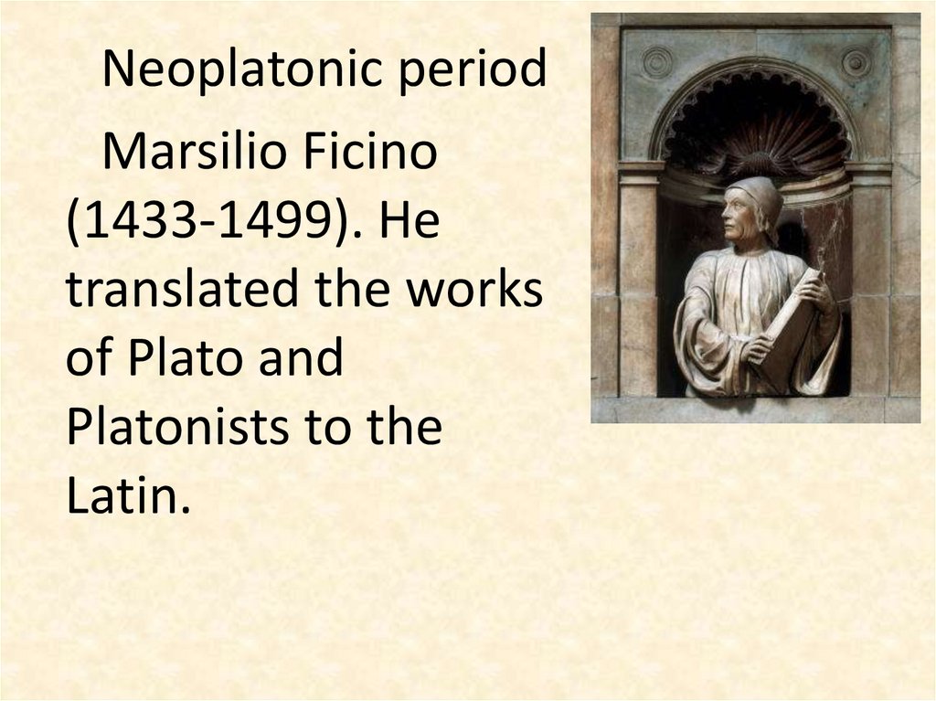 • 2nd period (Neoplatonic): Mid of XV-Beg