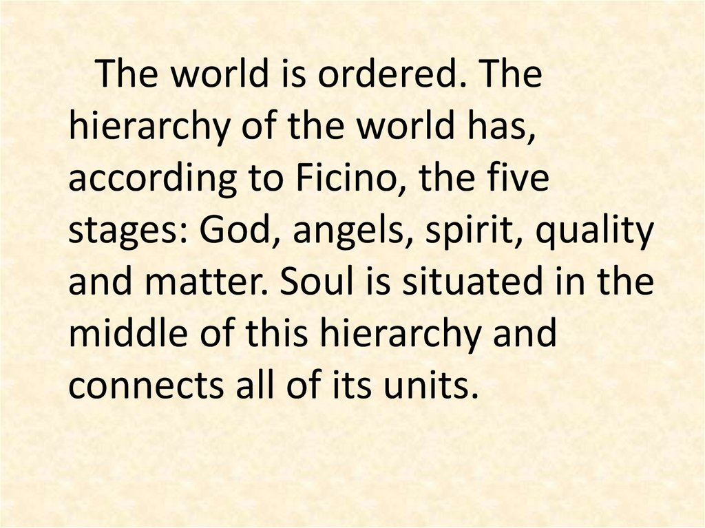He used Neoplatonic terms:“single”, “mind”, “soul”, “matter”