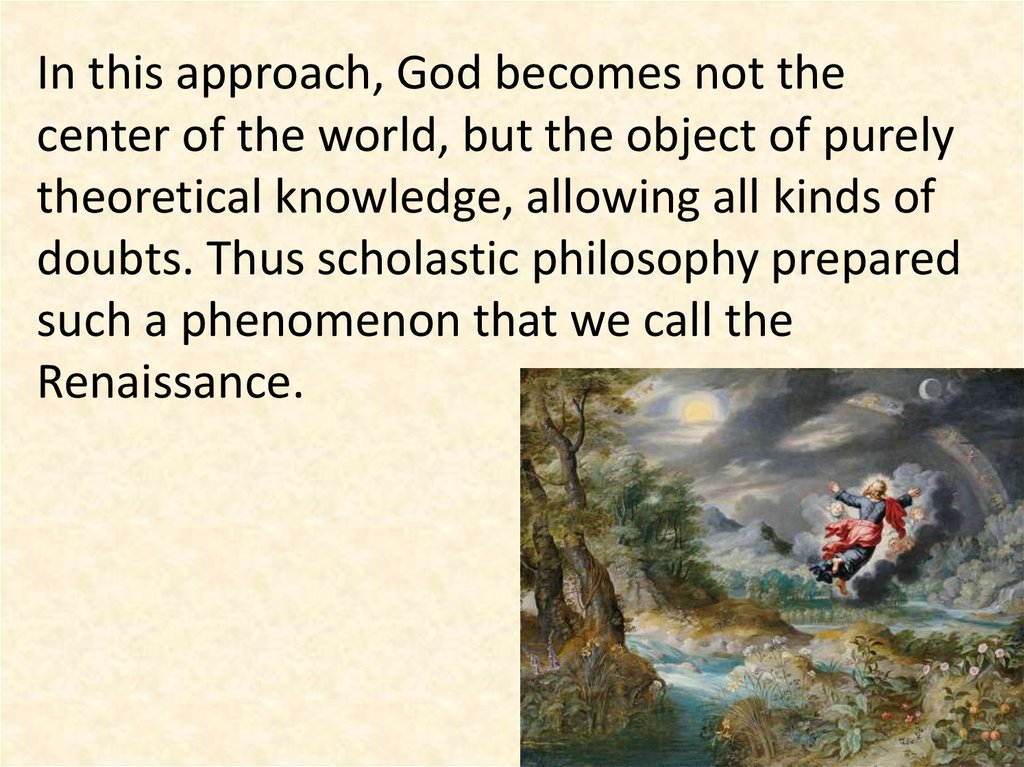 In this approach, God becomes not thecenter of the world, but the object of purely