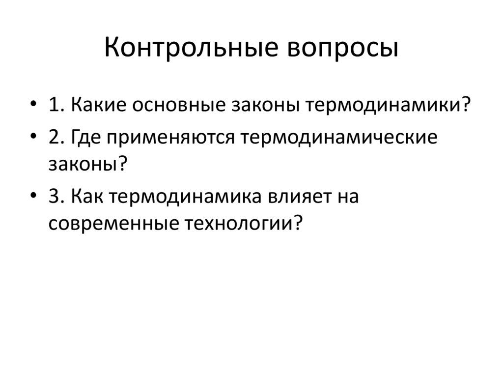 Контрольные вопросы• 1. Какие основные законы термодинамики?