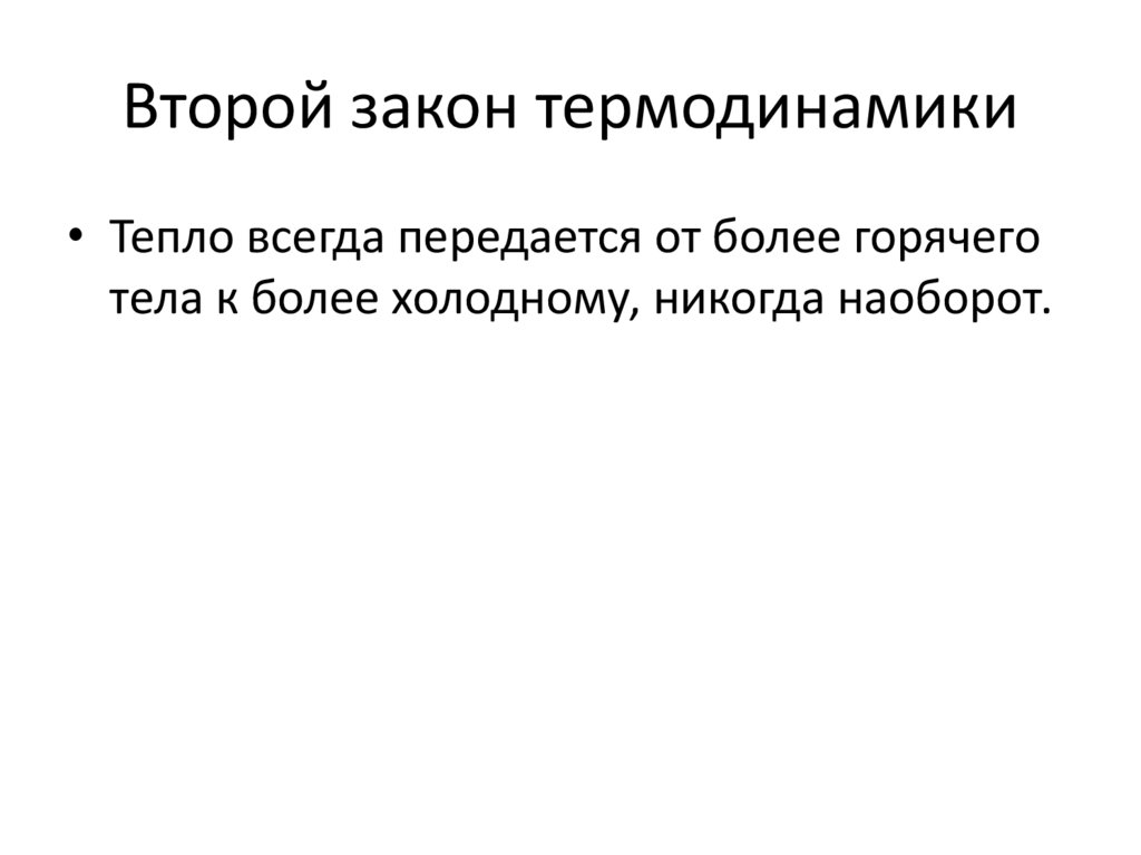 Второй закон термодинамики• Тепло всегда передается от более горячего