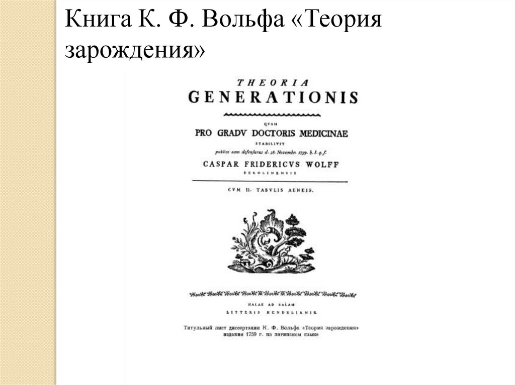 Книга К. Ф. Вольфа «Теориязарождения»