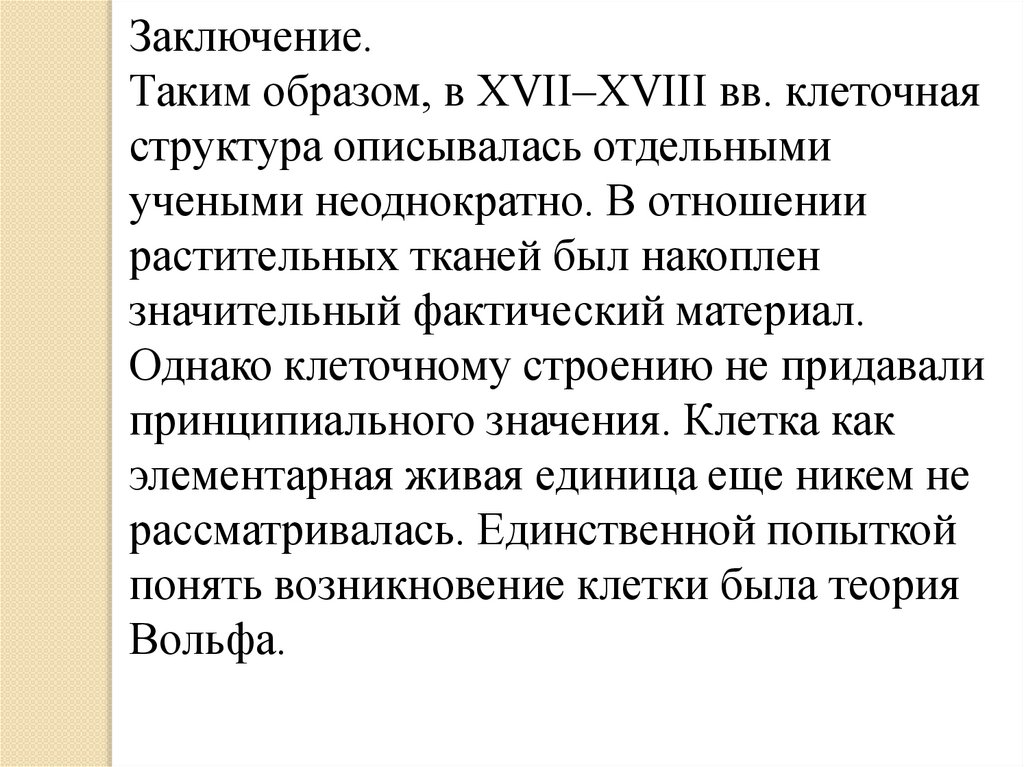 Заключение.Таким образом, в XVII–XVIII вв. клеточная