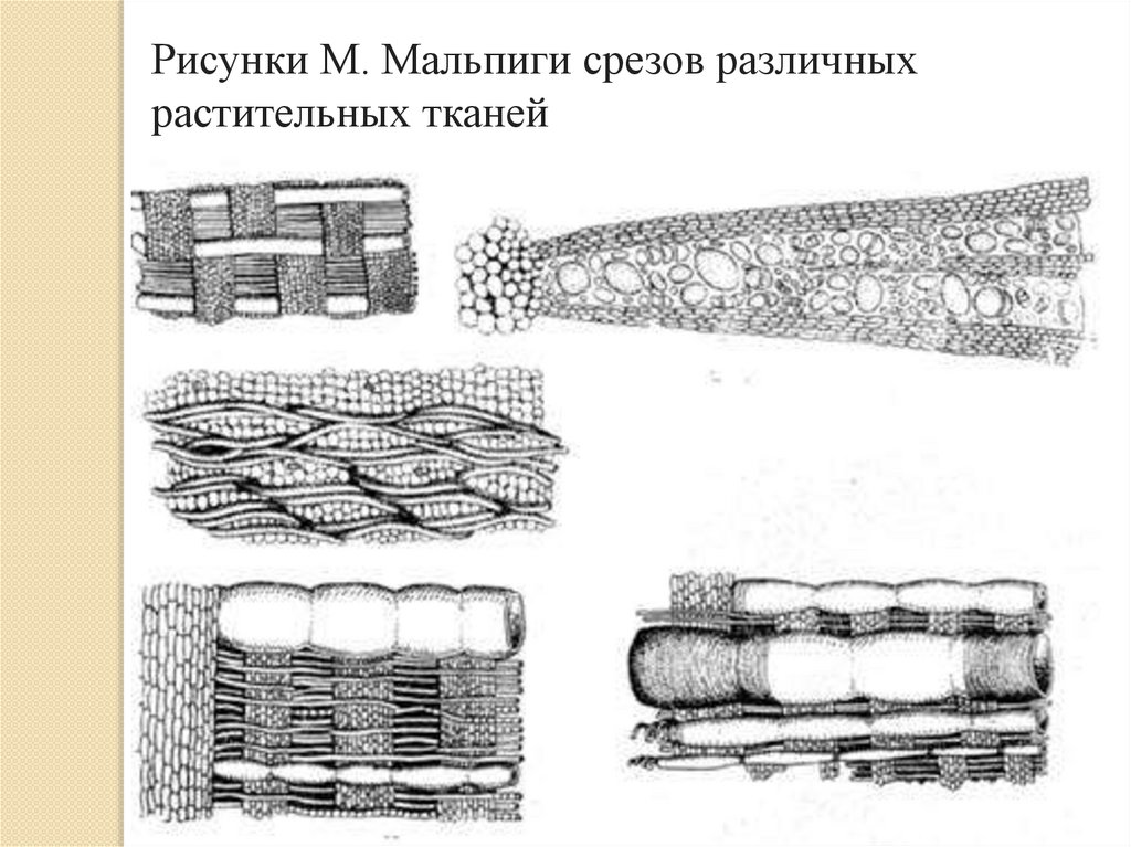 Рисунки М. Мальпиги срезов различныхрастительных тканей