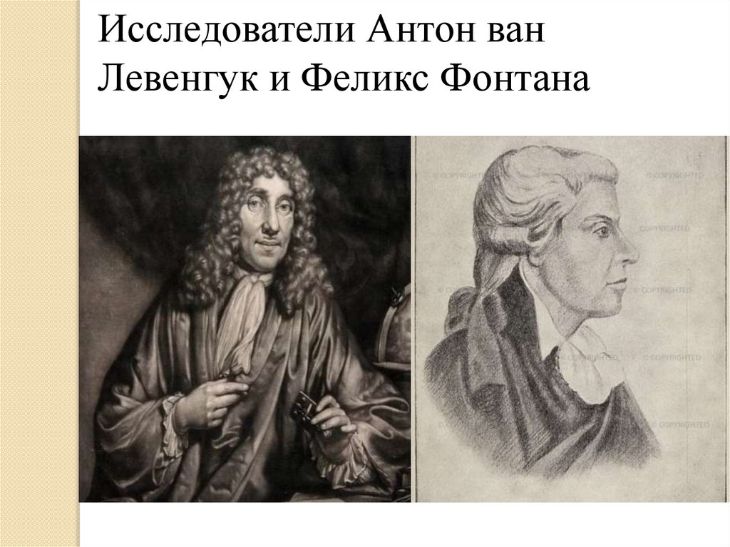 Исследователи Антон ванЛевенгук и Феликс Фонтана