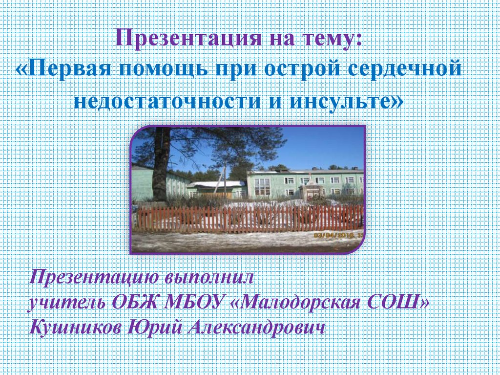 1. Презентация на тему: «Первая помощь при острой сердечной недостаточности и инсульте»