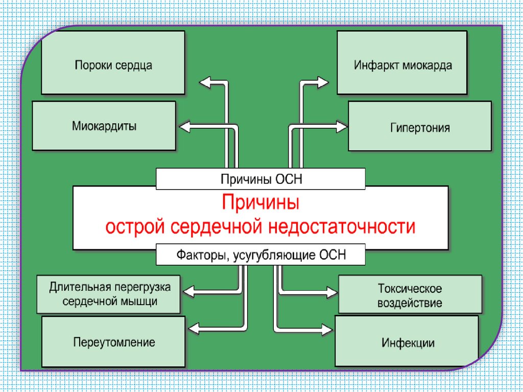 Острая сердечная недостаточность вбольшинстве случаев возникает при